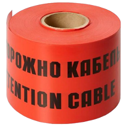 Лента красная с надписью "Осторожно Кабель" на русском и английском языках. Лента сигнальная с надписью «Осторожно кабель»- это современные и недорогие средства идентификации электрических сетей. Широкая сигнальная лента ЛСЭ 600 предлагается в качестве идентификационного средства кабельных линий. Входит в линейку продукции «Электра», отличается широкой рабочей поверхностью в 600 мм. Изготовлена в интенсивном красном цвете, оснащена предупреждающими надписями на внешней части. На русском и английском нанесен текст «Осторожно Кабель». К стандартному решению продукции мы предлагаем индивидуальное. В частности, вы можете заказать сигнальную ленту с иной маркировкой, текстом с контактной информацией, логотипом, пр.